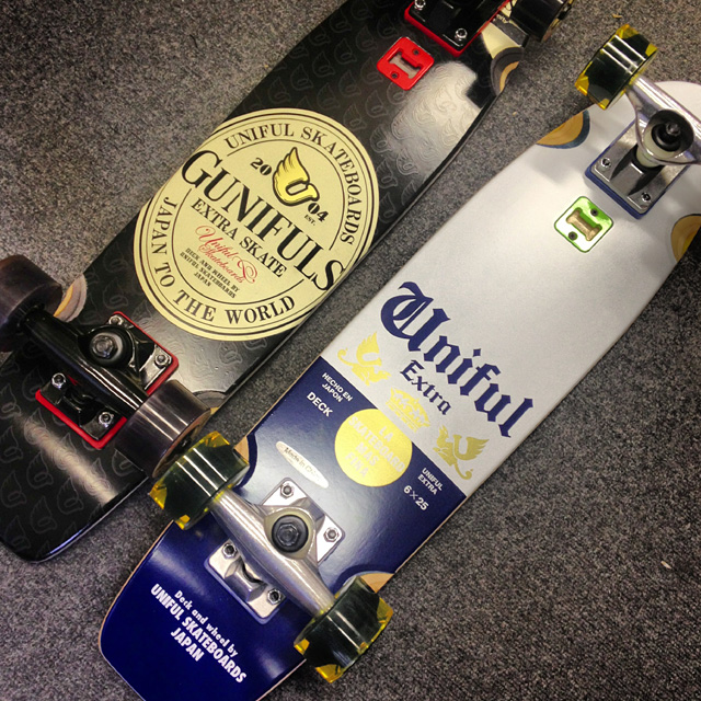 最近は春になってクルーザーやクルーズデッキが人気です。やっぱりちょっと暖かくなるとこういうクルーズでプラプラしたいのね。このUNIFULのミニクルーザーはトップにコルクが貼ってあって裸足危ないけどいける。バイナルクルーザーから乗り換える人も多くて、ちょっと人と違うクルーザーを探してる人がいっぱいいます。先日、GLOBE代理店の桜木社長に聞いたら、やっぱりクルーザーの売れゆきがハンパないらしくて、危なくVISTASでバイトしそうになりました。でもそれだけ道で転がってる人が増えてるってことなので今のステップではいい傾向なのではないでしょうか?ここから始まるスケートライフ。地元に気づいたらあったスケートパークでネットで買ったブランド名とか知らないスケートボードでストリートカルチャーも岡田晋も知らない世代、というかそういう層が今後着実に拡大していくことになるでしょう。でもね、スケートボードってやっぱり好きじゃないとできないの。好きで続けて行くと出会ってしまう不思議なスケートネットワーク。そうやってまた急増したバイナルスケーターから本物のスケートボーダーが出てくるでしょう。またはバイナルクルーザーでやたら上手い人とか。15段のハンドレールをスイッチ270リップとかね。バイナルボードで。ま、それはないか、って思ってますが、ちょっと昔までは「街中にスケートパークができたらいいなあ。でも無理だよねー。」って思ってましたからね。現実は想像を越えて行きます。
