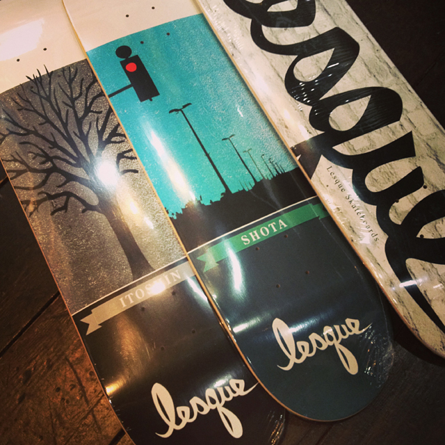 そしてこちらはinstants高橋賢人所属のLesqueの新作。SHOTAとITOSHINのシグニチャーにチームモデルがリリースされております。シンプルなグラフィックでサイズも色々。信頼の工場でプラスされたオススメできるデッキ達であります。次のデッキに迷ったらぜひ試してみていただきたい。「8.25インチかなり調子いいしょー by 高橋賢人」。