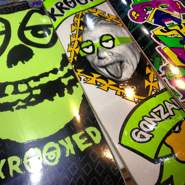 KROOKEDからもデッキが続々到着しております。やっぱり個性的でどこから見てもKROOKEDテイストがバリバリ出ております。僕もこのMisfits欲しいなあ。USサイズの8.25インチ来たら考えます。ここから春夏物がいっぱい来ますのでデッキもアパレルもシューズも続々続々やってきます。