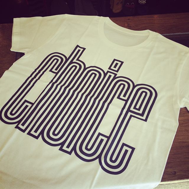 こちらはね、CHOICEです。Tシャツです。3,150円です。ちょっとinstagramでご紹介したら沢山ご連絡いただきまして今はMだけご用意できます。ちょっとメーカーにまた在庫状況聞いておきますね。XXLも作ってくれればいいのに。ご好評をいただいておりますデッキもあと少しご用意できます!