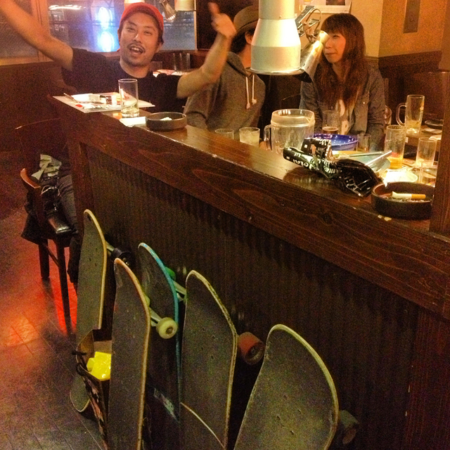 TIGERと会ったその夜は慶太の壮行会がありました。慶太ですから普通に声かけるとどれだけ集るかわかりませんので、今回はライダーとローカル達のタイミング合った面子でね。その日の昼に宮下パークで滑っていたTIGERが吉祥寺ストアに戻ってきてケントも壮行会に行くって言ったら「僕も行く」ってことに。いいね。そういうの嫌いじゃない。なのでサトルとケントとTIGERで吉祥寺ストアを閉めてから速攻で浦安に向かいました。浦安着いたらショップの電気が点いてます。やっぱり浅岡は残業中。無理やり仕事はストップしてみんなで会場に向かいました。みんなすっかり楽しそうでした。途中ゆめっちから「いつ頃来ますか?」って電話があったのでたぶんちょっと寂しかったんだぜ。でも僕らが着いた頃にはyume1200くらいになってまして最終的には2500くらいまでに到達しました。なにぶんアウェーでありましたので3000越えはなかったかと。本人は「もう3000越えてるぜー」って言ってましたが、自分で言ってるウチはまだ越えていないことが多いのです。ま、それはいいとして、着々と時間は過ぎていきます。必ずその日がやってきます。