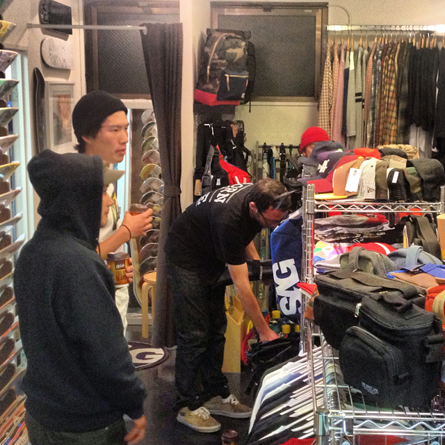 今日は爆弾低気圧です。まだ浦安は小雨程度ですがこれからガッツリ来るんでしょうね。先日の大雨の時には慶太、ケント、わっちょとカナダから来日中のデイブの4人で鹿浜シューティングしてきたようです。帰りにショップに寄ってチルしてましたが、雨がどんどん強くなってビショビショtoビショビショをメイクしてました。デイブのBLOGでその模様もちょっと紹介してました。2週間くらい滞在するようなのでどこかであったらよろしくね。