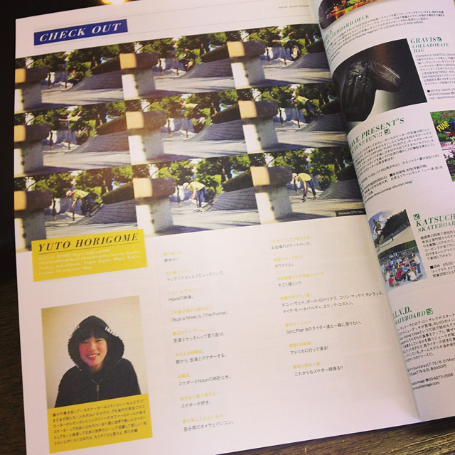 そしてそしてじっくり読み進めていたら驚いた!なんとinstants堀米雄斗がCHECK OUTに出とるじゃん。ユウトはかならずスケートボードをする奴ならみんな知ってる、ってライダーになると思ってます。今回特集された1977陣らに引けを取らない日本の宝。