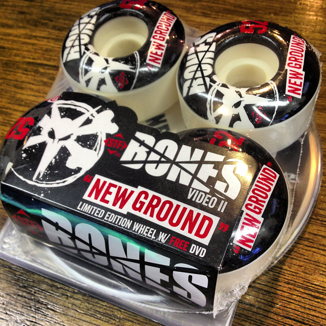こちらはね、BONESからリリースされたSTFの新しいモデルです。このウィールにはなんとDVDが付いてます。うん。新しい。ウィールにDVDってなんかもうシュリンクが大変そうだからね。DVDの内容もガッツリとアップカマー達が滑り倒しております。いいね。他のモデルと同じ価格なのでどうせ買うからDVD付き、って流れを生むことができるのか?