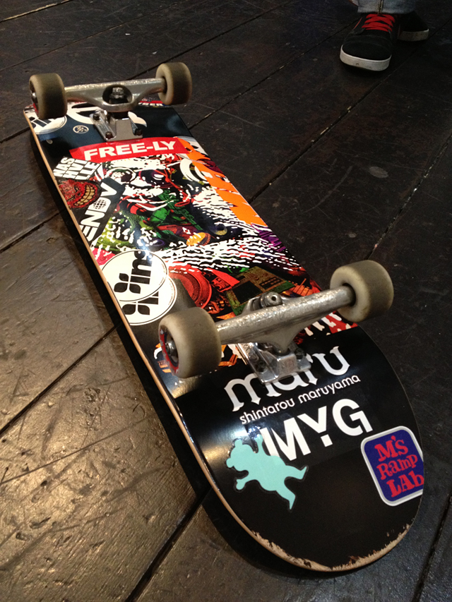そしてやってきたのは杉ちゃんです。この前はFUGに滑りに行ったら偶然杉ちゃん。ピック頂いてグッとあがりました。やっぱりどこかでなにかのご縁があって僕らはその中で生きている。最近そう実感してます。杉ちゃんは自身がプロデュースしているBLUTHのNEWデッキを持って来てくれました。このデッキ、どちらもグッとくるセッティング。ブレーキなしで乗れなくなったチャリへのオマージュとして7.9インチ、そして絶妙なINDY149セッティングの8.4インチの2種類です。さすがだ。僕も中目黒BAJAの輪に入れてほしい。アカチとヤナさんとブリトー祭りしたい。