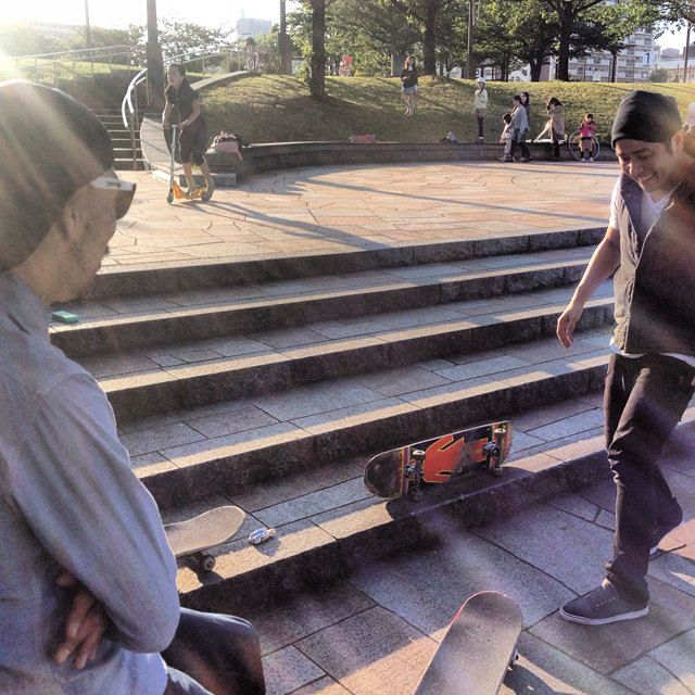 ケントも久々に会ったらシューズがロボロボだ。やっぱり滑ってるね。ケントはお台場のダイバーシティーのスケートパークのスタッフになったので、遊びに行ってみてください。タイミング合ったらちょろっとスケート教えてくれるかも。そうそう。ケントはHUF FOOTWEARからサポートされることになってかなりオシャレ野郎になってます。似合うね。