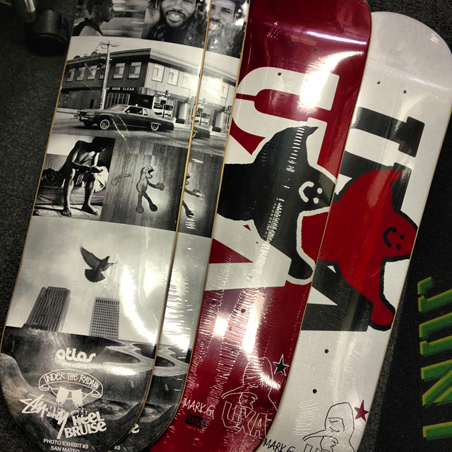 そして最新入荷はこちらのデッキ。UXA×GONZとAtlas×Stussy×Heel Bruiseのコラボデッキね。どれもいい。全部乗りたい。