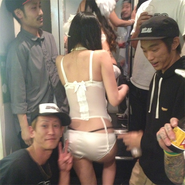 夜の運動会の楽屋は参加チームとダンサー達の控え室になっており。出場するライダーとショップ関係者が出入りできる感じです。今回はダンサーも通りますのでこういうシンクロが何度も。スポットライトで照らされてるとダンサーなんですが、普通の蛍光灯でみるダンサー達も常に会場の人気者でありました。
