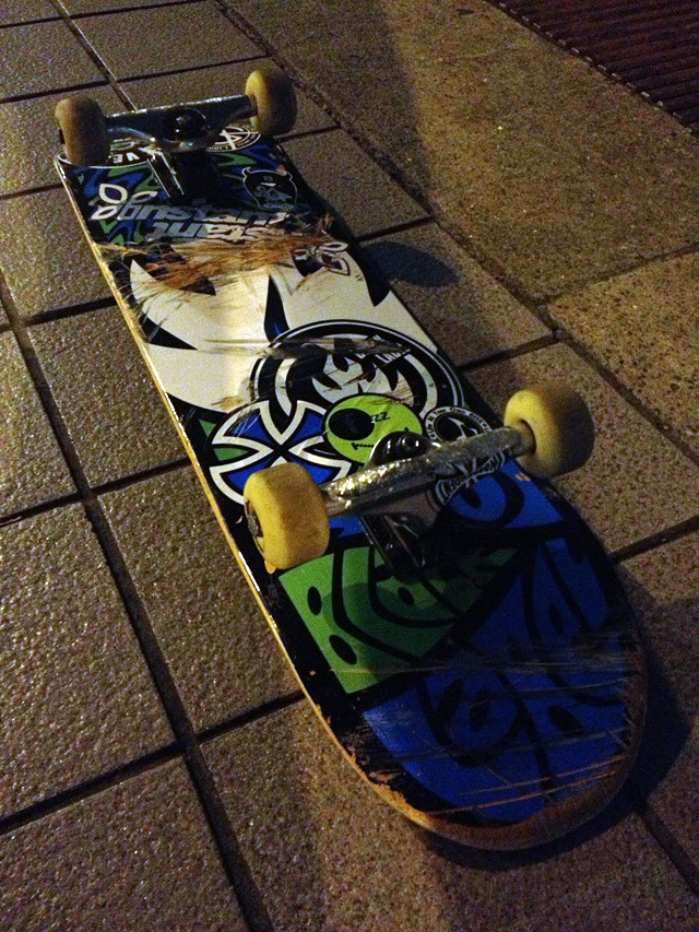 夜スケも気持ちいい季節になってきました。噂では吉祥寺の火曜塾が復活してすでに毎週のようにローカル達が当て込んでる模様です。ちょっと様子を見に行ったらやはり居りました。吉祥寺の妖精ユメッチが。面子もタイミングで色々です。楽しいです。そういえばBATTLE OF THE SHOPSでの夢3000も素敵でした。「おれMCやるぜ、夢3000」ってフローに乗せてステージに上がってきて、ゲームが始まろうとすると「めんどくせーよ」って居なくなる。さすがだ。それに翻弄されないつかっちゃんがまたわかってらっしゃる。
