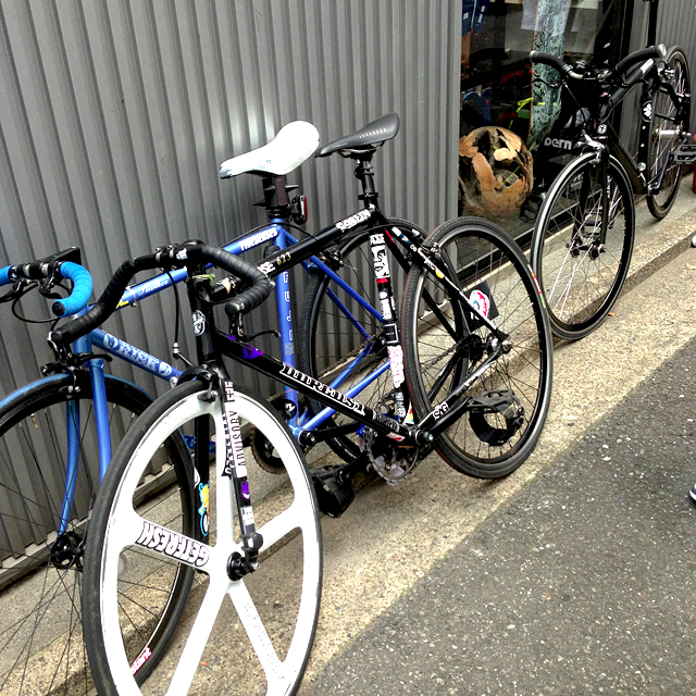 なんか今日はチャリの日です。WBASEのケンちゃんやローカルジオンもチャリで来てなんだかチャリ屋っぽい外観に。ま、そういう感じなのでとりあえずスタンディング大会しておきました。なんだかもう学生達が試験休みになってて、開店前からずっとショップで遊んでる。ビデオみたりけん玉したり指スケしたりね。ま、そういうのもいいね。夏っぽい。なんだかテリテリになったらやたらチャリ乗りたい。無心に踏んでいけるところまで。夏はそんな気にさせます。