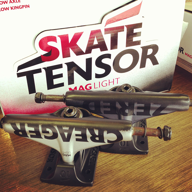 こちらは現在最軽量のTENSORのMAG-LITE。これマジで軽いのよ。233gだっけ?もってみるとその軽さに驚きます。幅2種類高さもLOとMIDがあるのでデッキサイズに合わせてお選び頂けます。トラック本体でも軽いけど装着するとさらにコンプリートの軽さにビビリます。