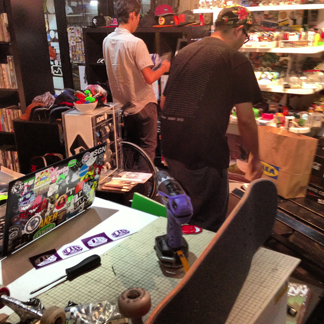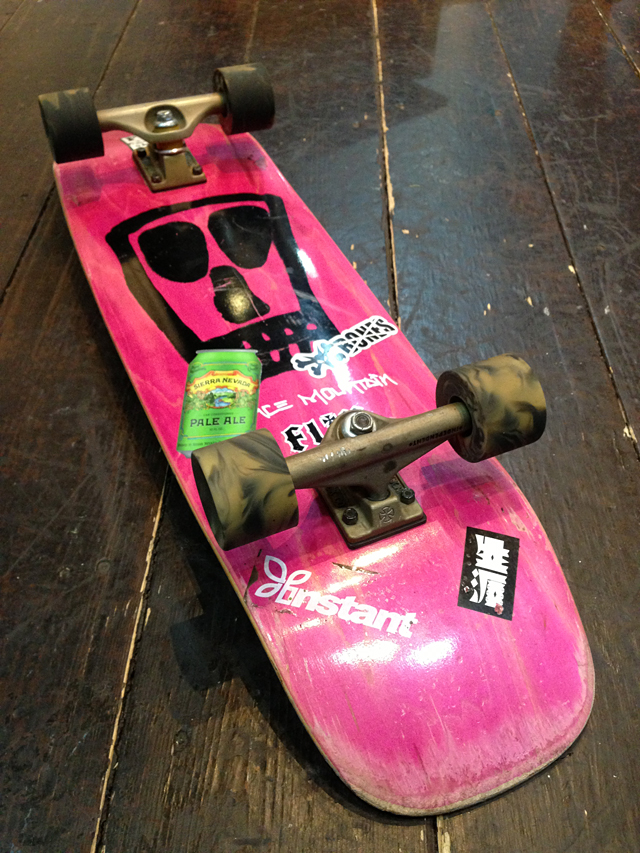 こちらはね、吉祥寺常連のケイちゃんのクルーザーであります。普通にプッシュ出勤でプッシュ帰宅。職人女子の姉御肌であります。ここ最近の女子スケートっぷりはすごい勢いで、浦安にも吉祥寺にも女子一人来店でコンプリート組み上げ、ってケースが増えてきました。あ、ちなみにインスタントはキッズでも女子でもひとりで来ても全然コワくないですよ。吉祥寺のサトル店長は超優しいし、浦安のアキラも若手の勢いがあります。1回来店するまでは敷居が高く感じるかもしれませんが、1回来ちゃえばそれまで躊躇していたのが無駄だったことに気づくはず。確かにスケートショップってなんかマニアの巣窟っぽいイメージありますし、実際に僕はそういうショップが大好きです。でもインスタントはマニアの巣窟でありながら敷居を低く女子にもキッズにもおじさんにもおばさんにもスケートボードが気になる人たちには誠心誠意ご説明させていただきます。おっと、またジャパ●ットっぽくなっちゃった。要はスケートボードは性別や年齢や職業に一切関係なく楽しめるし、それぞれに合ったハードルと乗り越えた達成感と充実感があるのです。それはやってみないとわからない。だから一度やってみて。ケイちゃんのコンプリートはかなりアツいです。僕もこれと同じセットを乗りたいくらい。