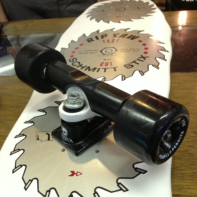 ショップにはSSPスラッピー隊のナカジがコンプリートを組みに来ました。驚いたね。RIPSAWは復刻デッキを何度かチェックしてますが、このトラックがやばかった。