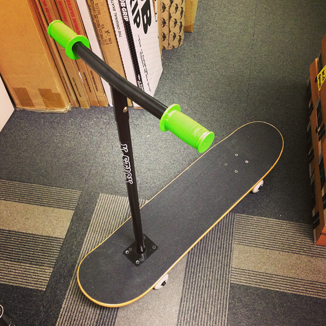 JOYNT林くんが名づけ親のこちらのハンドル。これなんかおもろいのよ。ハンドルつけるとスケートボードじゃ無くなっちゃうけど面白いのよね。クネクネ動けるスクーターっぽい感じ。これ上手い人だったら相当いろんなことできるようになると思うよ。