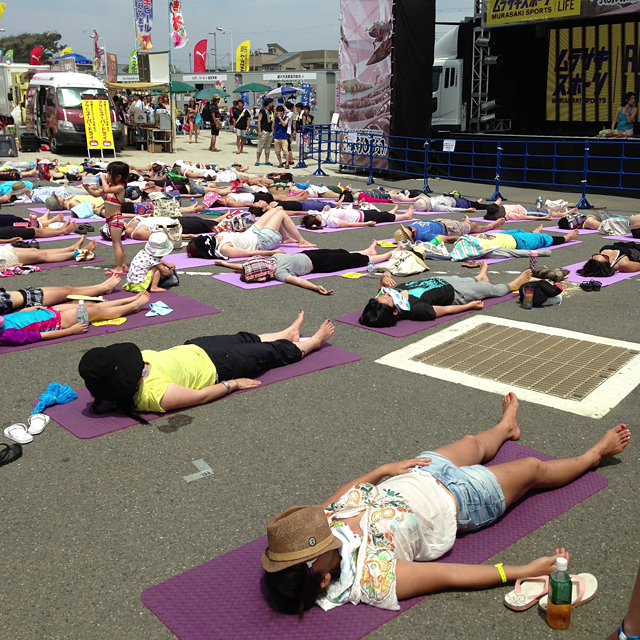そうそう。なんか吉祥寺改装のバタバタでご報告遅れましたが、テリテリの太陽の中、コンテストMCに行ってまいりました。会場は江の島ですよ。大きなイベントも同時開催されていてなんだかいっぱい人がいる。イベント始まって5050カレーちゃんにクルーザー借りて会場をプラッとしてみたら、突然みんなが寝ているエリアがありました。テロか?と思ったらヨガでした。よかった。ヨガって僕の中ではインドのおじいちゃんのイメージがありますが、実際には若い女性ばっかりなんですね。僕もやってみようかな。