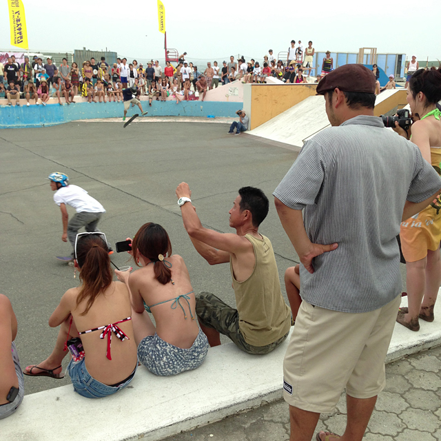コンテスト会場は夏でした。水着のお姉さん素敵です。コンテストの詳細はAJSA本家サイトでご確認いただきたいですが、なんだか今回はMCしてて楽しかったわー。個人的にやっぱりコンテスト好きだね。なんか順位とかトリックとかじゃなく、そういう場が好き。みんなが自分の意志で好きな事に全力である場。もちろん選手だけじゃなく、ジャッジやMCやスタッフも全員全力ですよ。僕はよくMCしてて集中し過ぎちゃうとコンテストの記憶が飛んじゃうのよね。誰がなんのトリックをしたとかを覚えてないの。なんでかっつーと、見たことをそのままいかに的確に伝えるかに集中して言葉に出して記憶に入らない。ま、そこまで集中しちゃうことはレアですが。