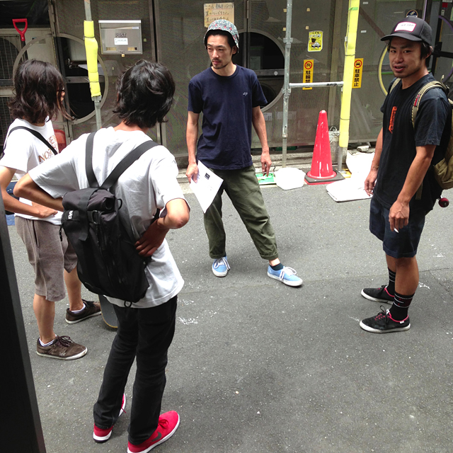 ちょっと遅れてシュンペイも到着。それにしてもシュンペイは雨の日に履けるシューズを履いているところを見たことがない。いつもロボロボのスケシューです。でもなんだか似合ってるのよね。スケートボードは滑れば滑るほどデッキもシューズもボロくなる。上手くなってきて楽しくなってきた頃が一番モノを消耗するのよね。そこを抜けてネットワークが広がって行くとまた色々変わってくるのよ。その人なりの動きと思いで色んな結果が出てきます。だからスケートボードはやめちゃダメ。滑らない時期があってもやめないほうがいいよ、ぜったい。