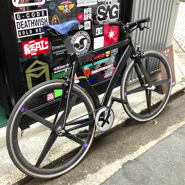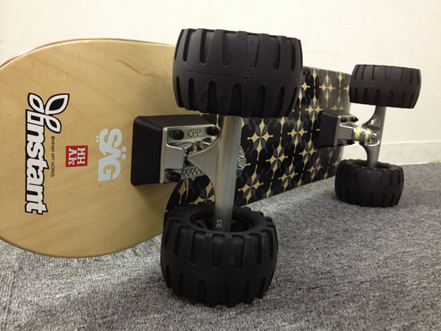 こちらはまだ拝見できてない友人のコンプリート。これすっごいね。某バッグブランドの某坂木くんのセッティングなんですが、このSAGのデッキが素敵です。MHAKちゃん素敵よ。組み込んだこのオフロードウィール。いいね。タフガイ。このウィールは実はインスタントの隠れた人気商品で、ご覧のウィールに分厚いスペースパット、そしてボルトがセットになって6,800円+TAX。なんか昔からある商品だけど価格が安くなってる気がする。