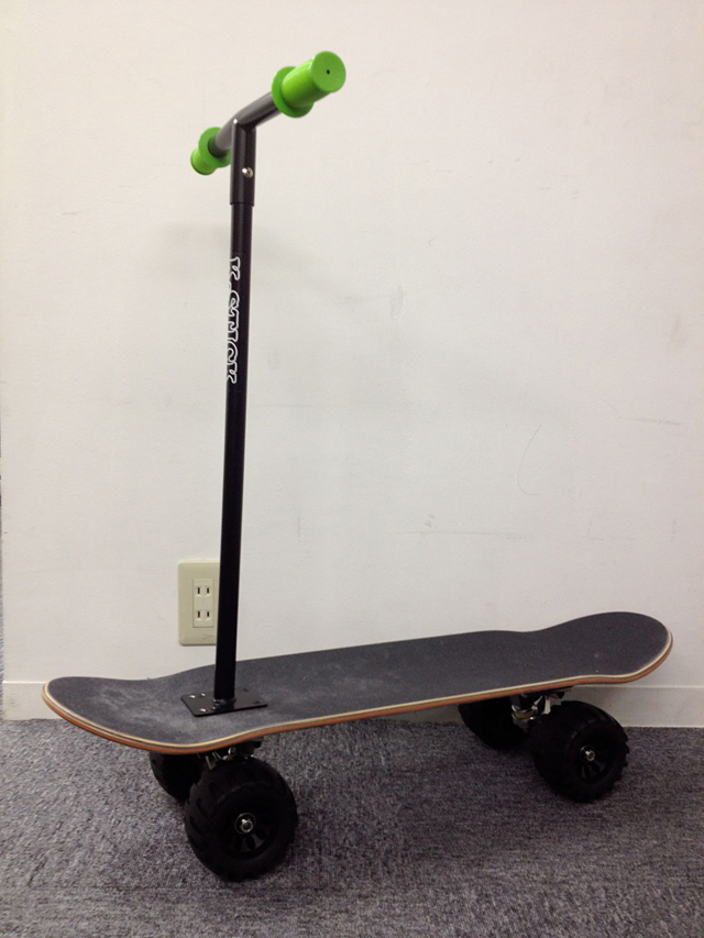 某坂木くんはやりました。なんとこのセッティングにハンドルを装着。これすごいねー。こわいねー。なにやら「フェスにもって行く荷物を運ぶのに・・・」って。さすがだ。スケートボードには無限の可能性がある。フェスの山の中に大荷物を積んでもって行き、アイドルタイムにはこのデッキでダウンヒルを楽しむ。素敵だ。とても大人だ。そして酒ノリの友達とかに気軽に貸してしまうとすごく危険だ。ハンドル付きは顔面に注意よ。フェスの持ち物にバンドエイドと湿布を追加することをオススメします。これあったらかなり楽しい夏になりそうですね。