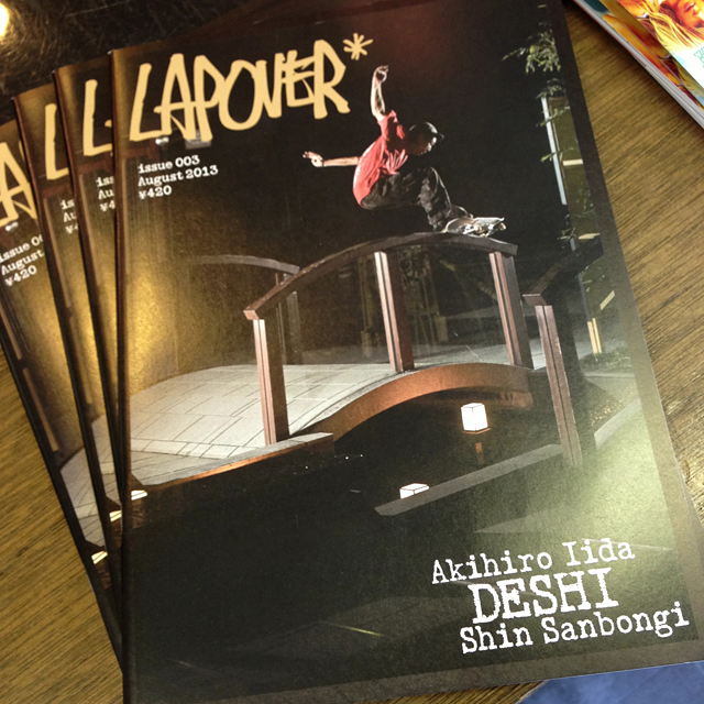 そしてこちらは特濃スケートマガジンの「LAPOVER」が入荷しました。またあらたなスケートマシーンを教えてもらった気がします。スケートボードって世界的にどこに行ってもそこのローカル色があって独自のシーンがあります。各地の映像やZINからはそういうスケートボード的な匂いを感じることができます。いまはリアルタイムで映像や写真がチェックできる環境が揃ってますが、個人的には紙の質感やインクの匂いが好きなんです。PDFファイルはあんまり見返さないしすぐになくなしちゃうけどマガジンはピッチリとって置いてあります。