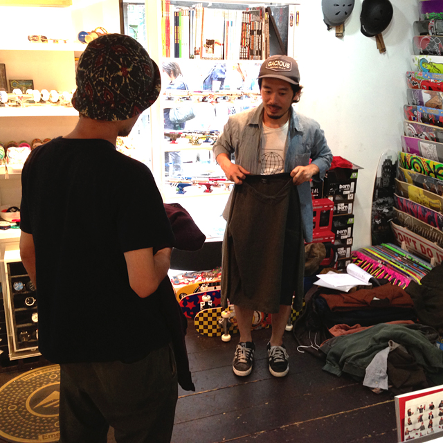 そして福島からRemilaの菅野さんがご来店。次期サンプルをどっかり背負ってプッシュで登場。さすがだ。サトルと一緒にサンプルを拝見してまた次のシーズンのアパレルたちの魅力にググッと来ておりました。やっぱりすべてに理由があるね。さすがだ。