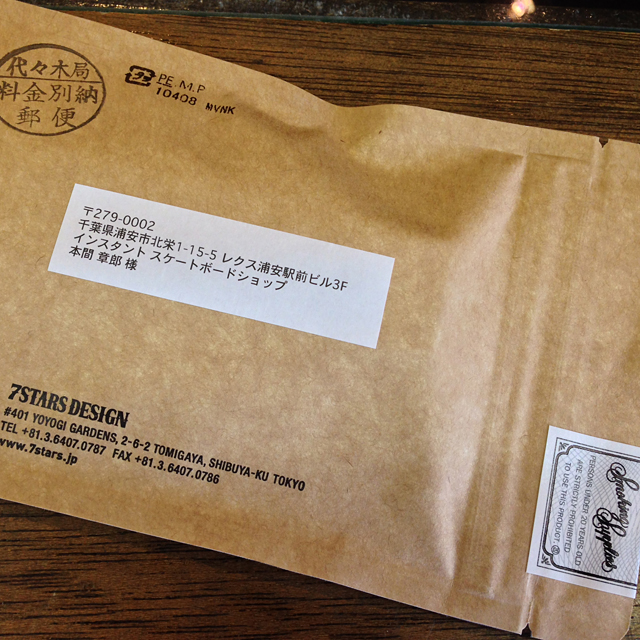 ショップにこちらのインビが到着しておりました。7STARS堀内さんから。まずこのパッケージングに飛ばされましてさすがの7STARSワークにグッと来てしまいました。展示会もすっごく行きたいのですが、出勤シフトで時間的にギリ。どこかで調整つけられたらうれしいなあ。堀内さんは先のUNIqueナオキもそうですが25年位前に新宿ジャブジャブ池で出会うご縁でありまして、インスタントの10周年記念のCIで現在のロゴをデザインして頂きました。10周年には記念デッキのデザインやNIKE SBとのコラボで製作したinstant DUNKのデザインワークも担当して頂き、15周年の記念クルーザーではグラフィックデザインのカッコ良さに気絶しそうになりました。その壮大なアイデアと深淵なデザインワークで常に予想と期待を遙かに超える作品を生み出す7STARSがプロデュースするBOLDLINEというプロジェクトが着々と進行しております。また楽しみなアイテムが登場するとのことで今からワクワクしております。生み出せる人って本当にうらやましい!
