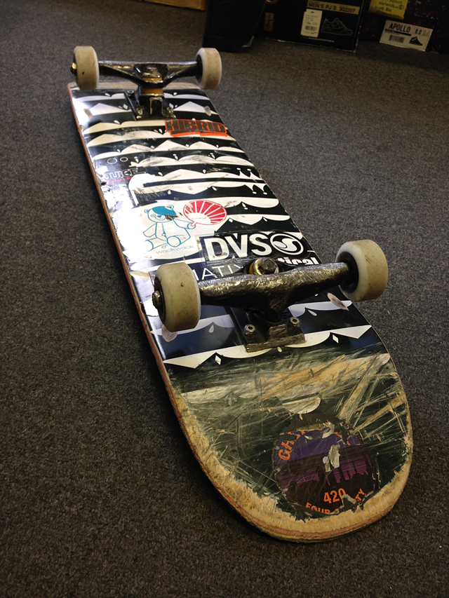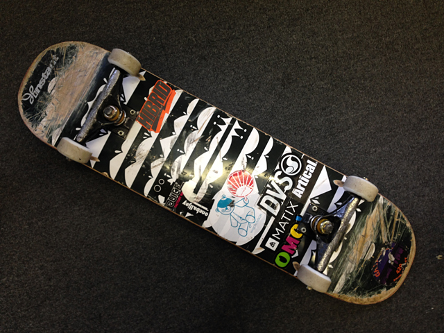 デッキは8.0インチ。もっと太くてもマサトモはぜんぜん大丈夫だと思う。トラックはVENTUREのLOですね。なんかマサトモは出会ったころからずっとLOに乗ってます。みんながHIを使っていた頃もずっとLO。だから高いトラックは乗れないと思うよ。やっぱりなんかセッティングにはどうしても譲れないところがあるのです。例えばマサトモは「トラックはLO」ってところはもう一生変わんない気がする。いや、あっさり58mm装着してゴリゴリって感じになっちゃうかもね。まあ今から決めつけない方がいいね。でも今はやっぱりLOみたい。OMG!のウィールを装着してかなりテクニカルな感じのセッティングが出来上がっております。さすがだ。HIBRIDもいっぱい撮ってるみたいなのでどう仕上がってくるのか今から楽しみです。