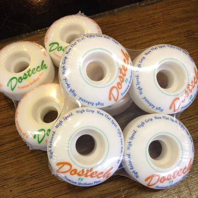そしてこちらはDostechからリリースされたNEWモデル!instants赤熊寛敬、そして池之上慶太もサポートを受けるドメスティックウィールであります。クマがテストライドを繰り返し、サイズセッティングやグラフィックまで仲間たちから生まれたウィールです。今回のモデルは新採用の高機能ウレタンを使用したすっごくいい感じのウィールみたい。最近ウィール各社のブラッシュアップが続いております。気になるね。今度はベアリングに飛び火するよ。また革新的なの来ちゃうかもね。