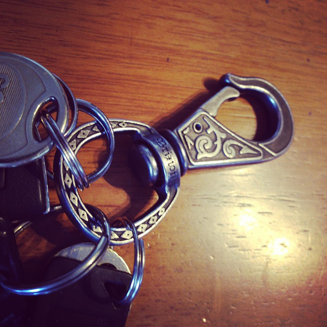 これは僕が使っているBRIXTONのキーホルダーなんですが、展示会やパーティーなどでよくスケートボーダー達とかぶります。隠れたヒットアイテムとみた。かなり使い勝手いいですよ。予備にもう一個買っておくことにします。