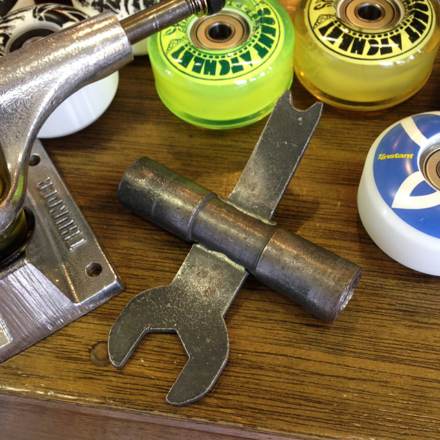こちらは昔からスケートボードに乗っている人にはおなじみのエレファントくんであります。スケートボードの工具なんですが、現在はT字レンチと呼ばれるTOOLが一般的ですが、僕らがスケートボードにのめり込んでいた頃にはこのエレファントくんが一番人気でありました。今見ると六角ナットのサイズとか違うけど、なんか手にしっくりくるのよね。これはもう20年くらいは使ってると思う。インスタントで一番古い工具です。インスタント始める前から使ってたからね。このエレファントくんは実は今でも大活躍しておりまして、潰れたアクセルナットを外すのにすっごく調子いいのですよ。ちょっと潰れるとT字レンチには入らないけどこれならばっちり入ります。おすすめ。