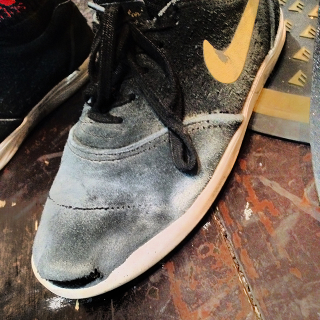吉祥寺でシュンペイが来て驚いた。だってこれ見て。つい最近までEMERICA履いてたからこのシューズもつい最近買ったはず。しかもこのKOSTON2は素材の強靭さハンパないモデル。スケシューって人によって選ぶポイントが違うよね。ソールが薄くて感触わかりやすいモデルが好きな人がいれば、絶対にカップソールじゃないとダメな人もいる。そしてシュンペイは「丈夫」なシューズを選びます。シュンペイのカッコいいところはシューグーしないのよ。だから素材の良さを吟味する。個人的には高耐久シューズはDUNKがチャンプではありますが、EMERICAのHERITECとかこのKOSTON2とかも丈夫さでは特筆ものであります。でも気が付けばこんなになってます。シュンペイはどれだけ滑ってるんだろう。たぶん2日くらいで僕の1年分くらい滑っているはず。じゃないとこんなにシューズがぶっ壊れるはずがない。でもそれだけ上手くなってるのよ。そして思い切り楽しんでる。さすがだ。
