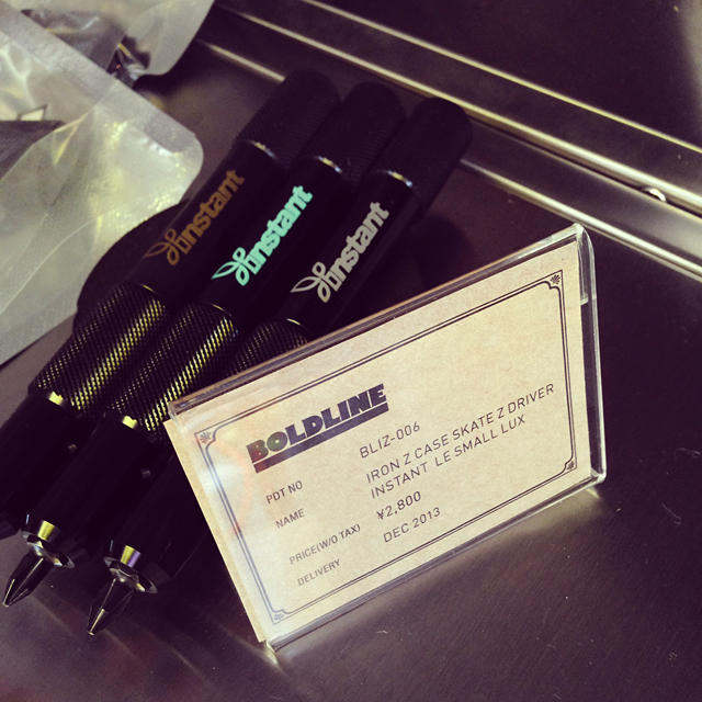 そして向かった先はBOLDLINEの展示会であります。これまたハンパないマニファクチャリング魂を見せてもらいました。最近いろんなデザインに入っているMFGってレターはなんなのかわかんなかったんですが、堀内さんに聞いたら一発解決。マニュファクチャー。BOLDLINE Z-DRIVERもNEWカラーのサンプルが展示されておりました。やっぱり個人的にはミント好きなんですが、シルバーやゴールドもビタッときますね。さすがだ。