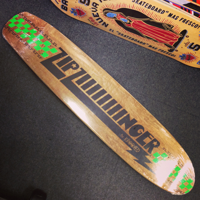 そんなRAD龍が先日の「おやじばかりの下町食い倒れツアー2013」で乗っていたのがこちらのKROOKED ZIPZIIIIINGA。これマジ素敵。テイスト的にはロングです。フラットノーズなんですがちょっと長さはあります。こんなデッキでスイスイ流してるおじさんカッコいいわ。RAD龍はINDY129にKROOKED65mmをセッティングしてました。詳しくは「元祖 デッキ拝見!」でチェックしてみてね。もう二度と入荷しないと思っていたらまたちょっと入ってきました。チャンス。
