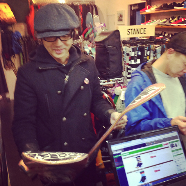 何年かぶりにHIGO-VICIOUSが来ましたよ。デッキをじっくり選んでいきました。だから昨日から雨なのね。それにしても元気そうでよかったわ。渡したかったものもやっと渡せたし。ブランク埋まった感じしました。今度は一緒に滑りたい。