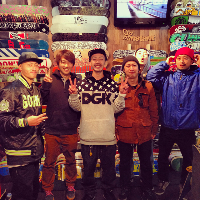 でね、吉祥寺出勤の時にプラッと来たご一行さまが、銀平の地元の福井のローカルの皆さん。DVD見せてもらいましたがみんな上手いのよ。マジで。もう福井はだいぶ寒いみたいですがスケートボーダーは滑れるところを見つけてキープしてもらいたいですね。北海道出身のコニに聞いたらマイナス10度とかでも滑ってたみたいですから。北には北の、南には南のシーンがあってスケートボードは本当に面白い。陰ながら応援してます。