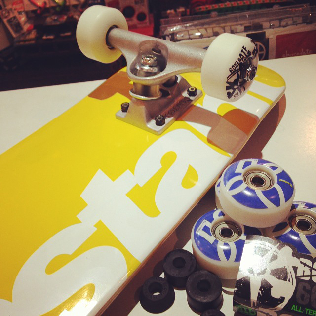 年末にはキッズ用のコンプリートセットを組みました。クリスマスに友人の息子に送りたかったのですが、ちょっと遅れて年末になっちゃった。サンタ遅刻。でもスケートボードってやっぱり自分の中からグッとくる何かが見つからないと続かないケースも多いので、あくまでおもちゃの一つとしてね。ご縁があるといいですな。