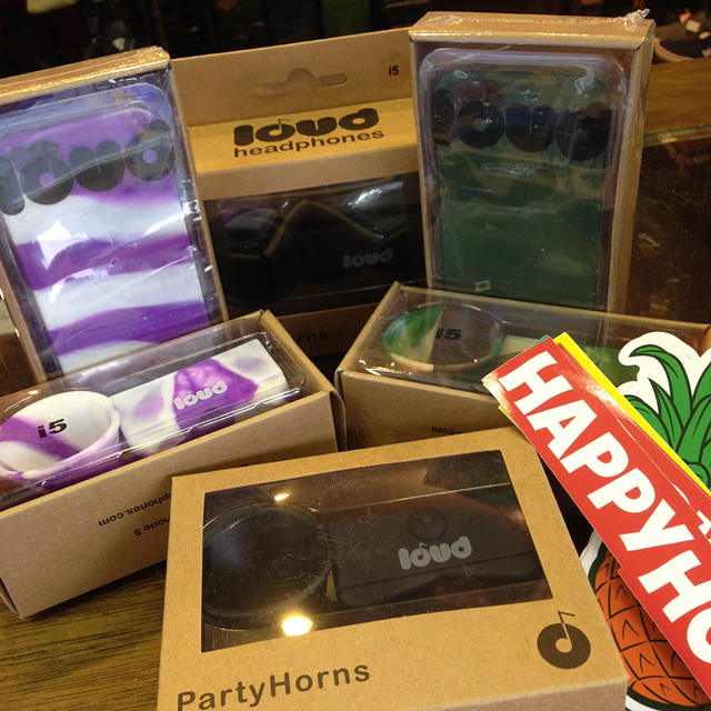 こちらはLOUDのNEWアイテム。これはiphoneを指して音楽をかけると音が増幅されて聞こえるって優れもの。ちょっと前にアメリカの映像で見たストリートキッズたちが500缶を切ってiphoneをブッ指して音楽聞いてるを見て感動したのを覚えてますが、このLOUDはそれをさらに洗練して商品にした感じであります。これ本当に驚くよ。僕もう3つ買ってるし。ひとつはPC前に、ひとつは寝室に、そしてひとつ無くしちゃって合計3個ね。家は子供が寝てたりするので深夜に原稿書いてる時とか音が欲しい時にビンゴでありました。ヘッドフォンだと周りの様子がわからないからトイレに起きた息子にマジでビビったりすると恥ずかしいでしょ。だからこれが正解。NEWカラーもイカしてます。おはやめに。