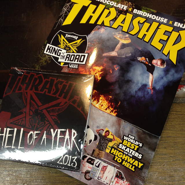 そしてこちらは最新号のTHRASHER。インスタなどでピックしましたが、この付録のDVDがまたすごいことすごいこと。2013の総集編って感じのEDITで、ヤバイパート集みたいな感じでEMERICAのWESTGATEのパートが丸々収録されてます。続いてBEN REYBONEのNHSのパートかな?ま、続々と続く激アツパートが終わると2013のTHRASHERのwebで特集されたツアーや企画が続々と。volcomのHAWAIIツアーやFOURSTARのishotのパートとか、DOUBLE ROCKとかがランダムに続々と見れるのです。これ激アツ。DVDとして立派に販売できる内容です。しかも驚くのがこちらのDVDが一緒になって630円。初回入荷分は速攻で売り切れて、本日、吉祥寺ストア、浦安ストアに再入荷しております。おはやめに。