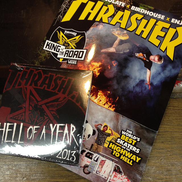 で、もうゲットしましたか?こちらのTHRASHER。もう次の号がリリースされますが、これはマストですぞ。この付録のDVDの内容がハンパないのよ。THRASHER2013年総集編。EMERICAのWESTGATEのパートがまるまる収録されてて、NYJAHの例のパートやISHOTのFOURSTARのパートやvolcom islandツアーやDOUBLE ROCKや、もうマジでこのDVDが3.150円で売ってたら買っちゃうくらいの勢いです。すでに相当な数を販売しておりますが、あとちょっとだけご用意できますのでまだゲットされてない方はお早めに。