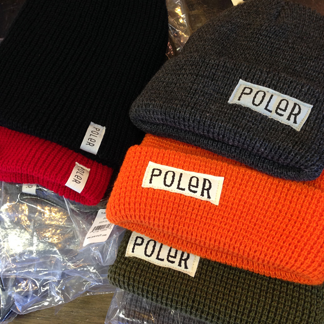 POLeRのニットキャップも続々届いてます。これ大人気。今シーズンのニットキャップはBrixton、Altamont、HUF、MATIX、そしてこのPOLeRが人気高いっす。ここ最近は夏でもニットキャップの人増えましたね。ゲージ細めの奴は通年イケる感じです。