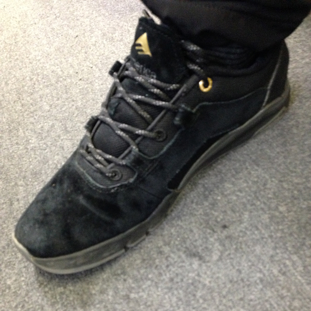 プラッとクマが遊びに来ました。instantsプロライダー赤熊寛敬であります。クマも浦安ローカルなのでちょっと時間あると寄ってくれます。その度に色々な話をするのですが、今度ちょっとデートできるかも。最近はなかなか水曜日休めなかったのですが、来月、再来月あたりの塾に参戦したいと思います。そうそう。クマがEMERICAのWESTGATEを履いてました。これ良さそうよ。ハイテクながら抜群の安定感があるそうです。ソールの形状っていうかデザインがガッツリ接地する感じするんだって。気になるね。履いてみたい。