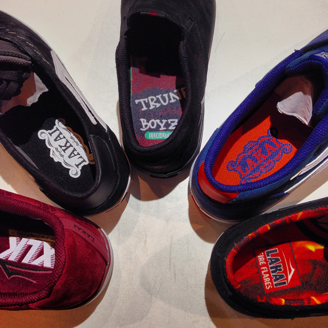 吉祥寺ストアにはLAKAIのサンプルを持って工藤ちゃんが来てくれた。LAKAIも取り扱い会社やライダーがガラッと変わって新生LAKAIとしてスケートボーダーのハートをつかむことでしょう。TRANK BOYSのスリッポンなんかはかなりグッと来ちゃいました。最近スリッポンで滑っちゃう人多いしね。ちょっと前だと三世とかいつもスリッポンだったし、先日EMERICAの瀬尻くんに聞いたら「スリッポンでガンガンいけちゃいますよ」って言ってました。さすがだ。