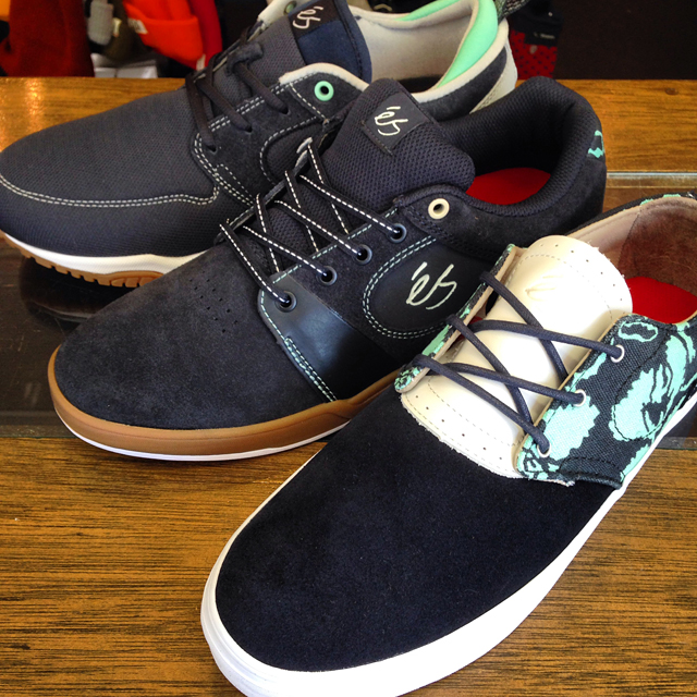 春は新作の入荷ラッシュです。もう毎日のように新しいアイテムが続々到着しております。先日到着したBRIXTONはすでに沢山のご注文を頂いて在庫が薄くなってるアイテムも出始めました。すごいね。で、こちらは人気のesから「ネイビーパック」の3型が到着。濃いめのネイビーなんですごく落ち着いた感じです。バリスケモデル×2型とアフタースケート1型で死角なしな感じです。stiインソールでクッションも良く素材の良さからスケシューの王道として人気が復活しております。