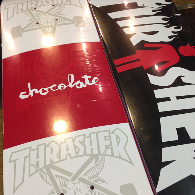 こちらはデッキです。GIRL×THRASHER、GIRL×chocolateの各モデルであります。サイズも2種類づつあって、大き目キッズやガールズにも対応できます。でもコラボってなんでグッと来ちゃうんでしょうか?組み合わせ的に反応しないものもモチロンありますが、こういうコラボはかなりツボ。サイズがなくて僕は乗れるのありませんが、マッチする方にはおススメです。