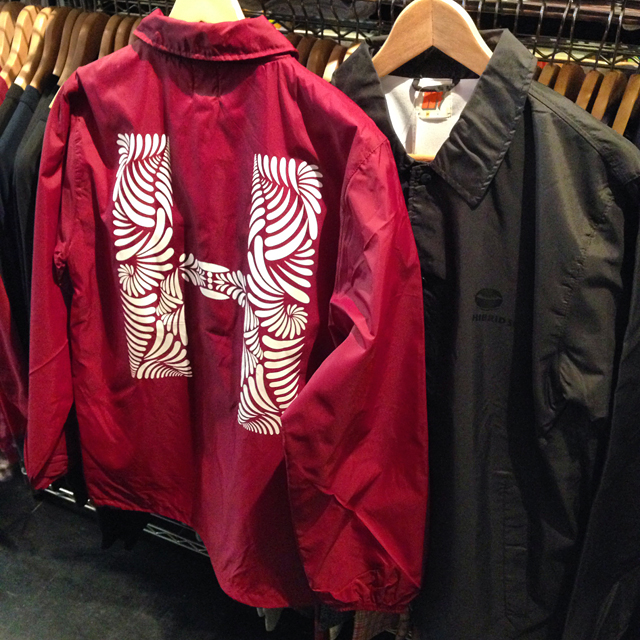 こちらはHIBRIDのコーチジャケット。やっとコーチジャケットの季節になってきました。今は関東あたりだと、Tシャツ+LSシャツ+コーチジャケットって感じですが、もう少しするとTシャツ+コーチ。この気持ち良さハンパないす。コーチジャケットってスケートボード好きな人はマストアイテムっしょ。僕もN.T.ORIGINALのヤツ大事に着てます。このHIBRIDのコーチも他のブランドもかなり動きが良いので気になる方はお早めに!