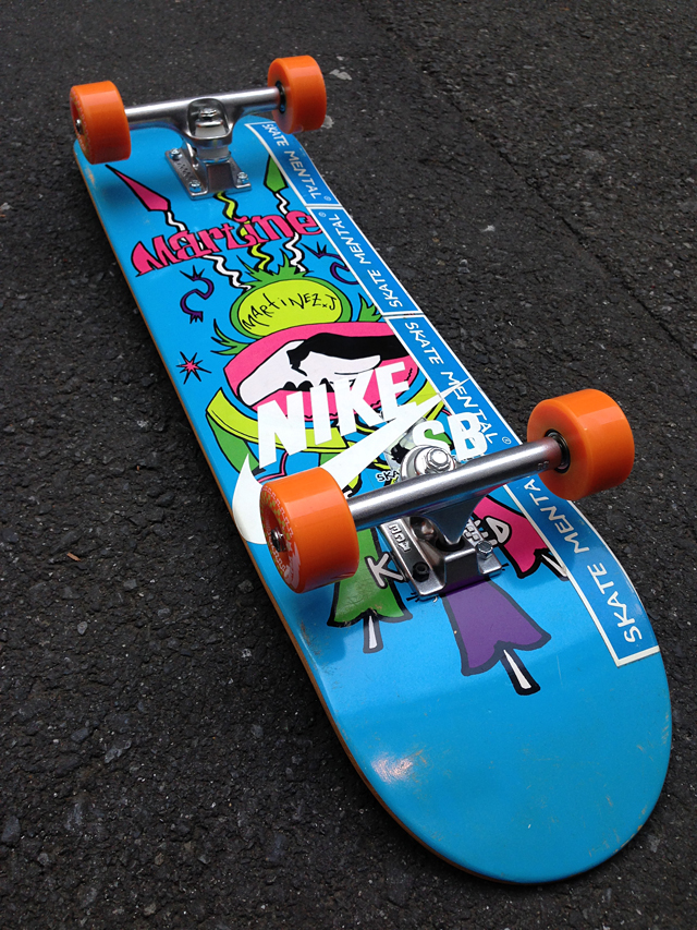 こちらはキッズのコンプリートスケートボード。春休みに入ってなんか始めたいって方には全力でスケートボードをおススメします。だって楽しいし。ま、おススメするのは楽しいだけではないのですが、僕がこの話をすると膨大な長さになってしまいます。簡単にまとめると「楽しい」ってところに集約されるのですが、どんな世代のどんな人にも必ずマッチする自分越えの満足感、達成感、充実感、があるのです。職業、年齢、性別、地域、まったくすべて関係ない。キッズだけじゃなくスケートボードは全国民一度はやってみるべきだと思ってます。僕は。