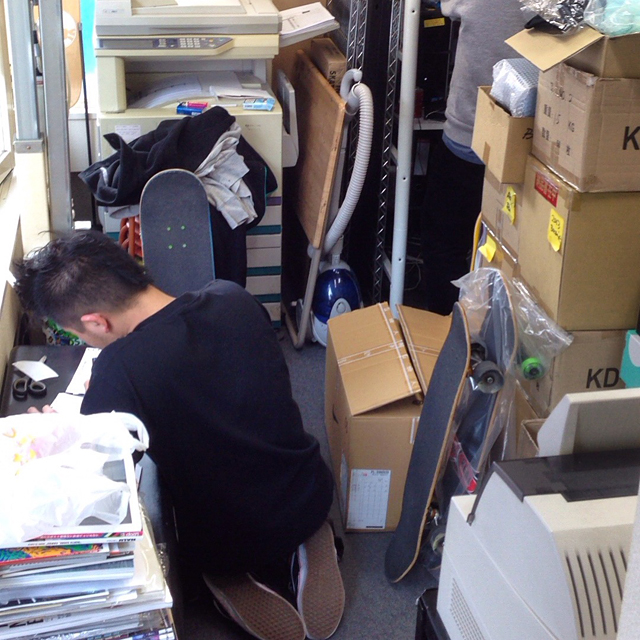そして毎号リリースされるのを心待ちにしている人が多い「Sb」の編集長センちゃんもお友達を連れて吉祥寺ストアに寄ってくれました。センちゃんの散髪をしている美容師の鯨岡さんがスケートボードを始めるらしく、センちゃんがまだSKATEMENTALを始める前にBRAD STABAにもらったデッキをポンっと鯨岡さんにあげちゃって、それに合う足回りを選びに来てくれた次第です。まずこのデッキの素晴らしさにいつか鯨岡さんは気が付く事になりますが、壁に飾ってもおかしくないデッキを組んじゃうのが素敵。KROOKEDにSKATE MENTALベタ貼りがまた良いす。デッキのサイズは8インチちょいって感じですかね?目測で。