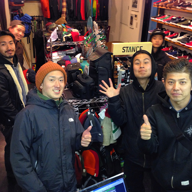 吉祥寺ストアにも春の来店が続々です。まずはこちらのジェッツ森てっちゃんであります。「いいね」押し過ぎてfacebookからおこられちゃう強者であります。個人的にはまだショップを始めるずっと前に、てっちゃんが鴨川ノンキーに作ったミニランプに毎週のように通っておりました。タクチャン、ダイコン、亘、マラオ、当時の濃い思い出はちょっと文字には出来ない位の事件が山盛りです。その頃からのお付き合いになりますので、もう30年に近づいてきました。人生の半分以上の大先輩。TOKYO Z-BOYSを仕切るようになってからも、僕がショップを始めてからも、AJSAでMCを一緒にさせてもらうようになってからも、ずっと最高のスケート仲間であり大先輩であります。ここ数年のMCジェッツはキッズからの人気が絶大で、コンテストの度にキッズや親御さんと記念撮影とかしているのみて「先輩さすがっす」と心で思っております。また今年もコンテストシーズンが始まります。AJSAのスケジュールは公式サイトでご確認ください。
