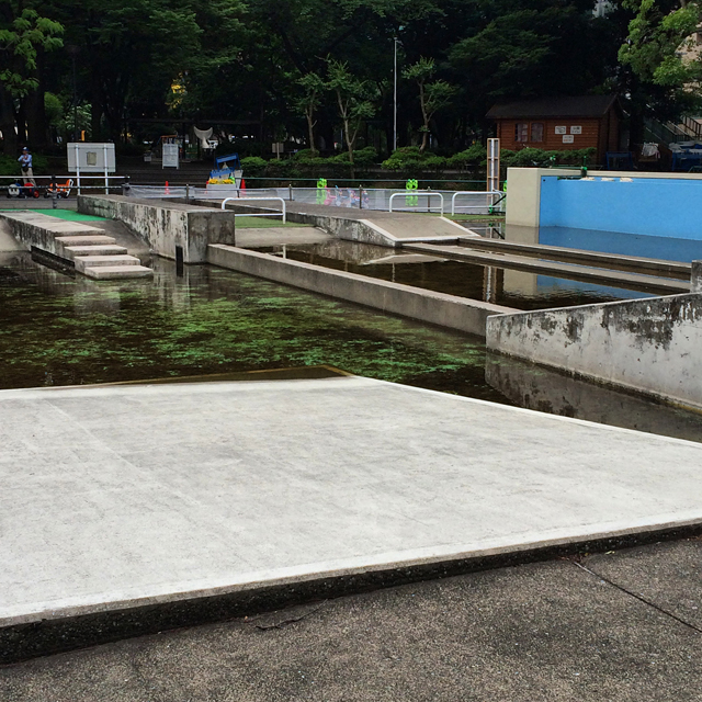 また先日、新宿にパスポートの更新で行ったついでにジャブって来ました。まだ超長く脱線しそうなので短めにまとめますが、僕は世田谷区のとあるスポットでスケートボードを始め、仲間が増えていろんなスポットに顔出すようになって、LACやいろんな公園スポット、シークレットランプや有名スポットにも毎週出かけました。そしてスケートバディのマラオと通うようになったこのジャブ池でUNIqueナオキやチャーリー、マサユキや清水さんらに出会い、「ローカリズム」というものを体感するのであります。その後、タクちゃんやダイコン、ワタル、りょうちゃん、マラオらと某高速の下のスポットに、もらったミニランプの鉄骨の骨組みを4tトラックで2往復して持ち込んで、新たなスケートスポットを作ったりしてました。それとは別に山奥に作った25mプールより大きいスパインランプもこのメンツで作り上げ、3年間シークレットのまま使ってましたが土地の測量で取り壊しました。そのタイミングで大学卒業が見えてきて就活に入り、僕はスケートボードを押し入れにしまったのです。おっと、やっぱり超脱線したぞ。ジャブは僕らの聖地であり道場。スケートボードを扱う今の仕事も仲間たちも全てがここから始まったと思える位、僕にとっては特別な場所なのです。そしてそういう思いを持っているのは僕だけではないはずです。カーディエルは奥の細長ステアをFS180で飛びました。クリスチャンホソイは真ん中の小さいバンクから横のレッジを飛び越えました。トニーホークは手前のバンクをGターンでくるくる回りながら降りて行きました。GONZは画像にはない入口の階段のレールをケイブマンでボードスライドしてました。そういうレジェンドだけじゃなく、淳之介の180レイトショウビットや徹のフリップ、ONIXのオーリートランスファー、真之介のトレフリップtoテールスライド、などなど、なんだか目に焼き付いているトリックが山盛りあります。夏休みの深夜は家出少年少女がずっと滑るのをコーヒー缶くわえて見てたり、林の中では全裸のおじさんが走り回ったりしてました。今思えばそういうの全部含めてストリートカルチャーな感じがします。大きな潮流です。ちなみに今は滑れません。