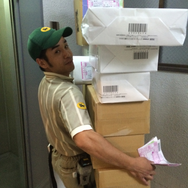 ここ最近はデッキやコンプリートの出荷が多くなってます。webストア、楽天ストアからも沢山のご連絡を頂きまして、在庫確認などにお時間を頂いているケースもございます。お待たせして申し訳ありません。色々急ぎ目で進めます。プレゼントキャンペーンの抽選もそろそろ佳境を迎えております。出荷が増えると荷物が多いってことですが、こちらのヤマト運輸のアッキーはスキルがかなりやばくて、コンプ3台、デッキ2枚、シューズ4足、小物いくつか、を一発で運び出します。絶対に落とさないし。